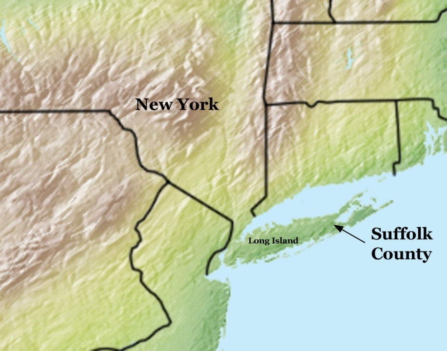 Suffolk County is situated on the eastern portion of Long Island, New York State. Suffolk County’s only land boundary is with Nassau County to the west. It also has water boundaries with Fairfield, New Haven, Middlesex & New London Counties in Connecticut & Washington County, Rhode Island. The county seat is Riverhead. In area, Suffolk County covers 2373 square miles, of which 912 square miles is land.